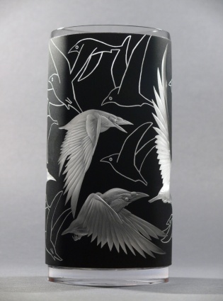 Bílé vrány / negativní rytina doplněná barvou / 20,5 × 10 cm